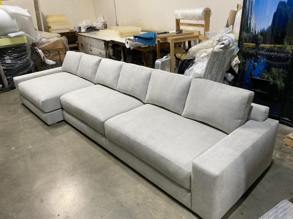 We manufacture all frames for upholstery, using only hardwood 5/4" lumber and double-dowelled glued construction. All frames are corner-blocked. We will spring both soft or hard edge and 8-way hand tie per your requirements. Our tailoring and upholstery detail is the finest in the industry. It has brought us a number of clients that require private label work.